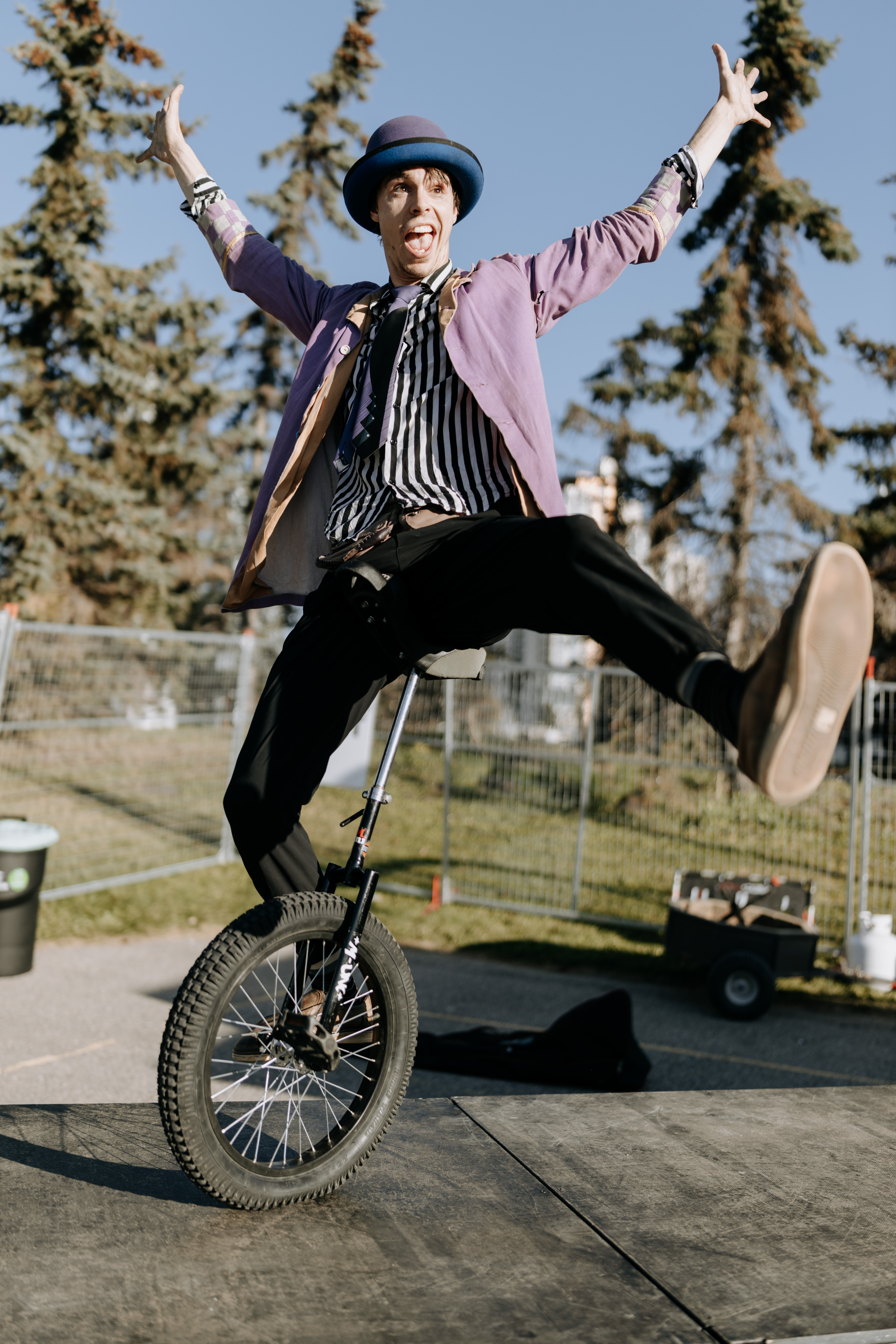 Ever seen a man balance on one wheel, juggle knives, and crack jokes—all at once?
